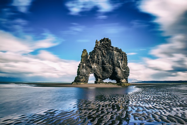 Fantastické kamenné útvary najdete u pobřeží, například na černé pláži Black beach. Na pohlednicích většinou dominuje zkamenělý obr Hvítserkur, který je na severu. Na severu hledejte i jezerní kráter Kerid, obklopený červenou vulkanickou zeminou.